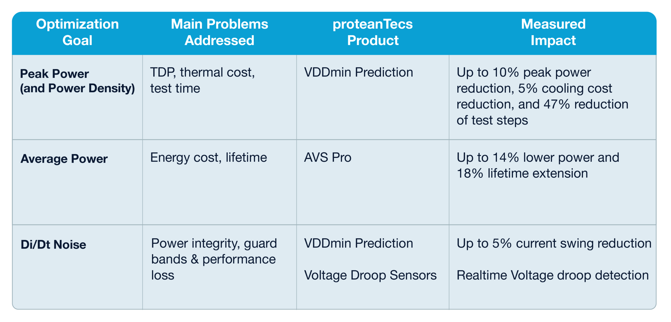 Chipmakers face three power-related constraints in every design: peak power, average power, and Di/Dt. Without visibility into real device behavior, these factors are managed through best known assumptions and worst-case settings.
